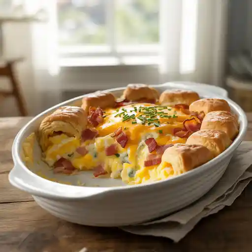 There is something magical about the smell of breakfast filling the house on a lazy Sunday morning. This breakfast casserole with crescent rolls combines cozy comfort with a hearty dose of indulgence. Buttery, flaky crescent rolls line the base like a golden quilt, while a savory mixture of fluffy eggs, crumbled sausage, crispy bacon, and melted cheddar cheese bakes into a bubbling masterpiece. One bite, and you are instantly greeted by layers of warm richness that taste like home.