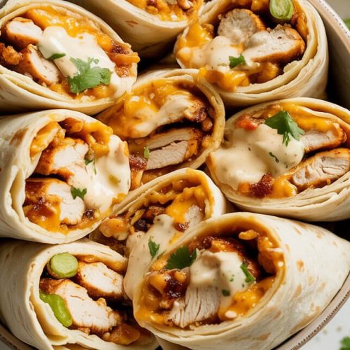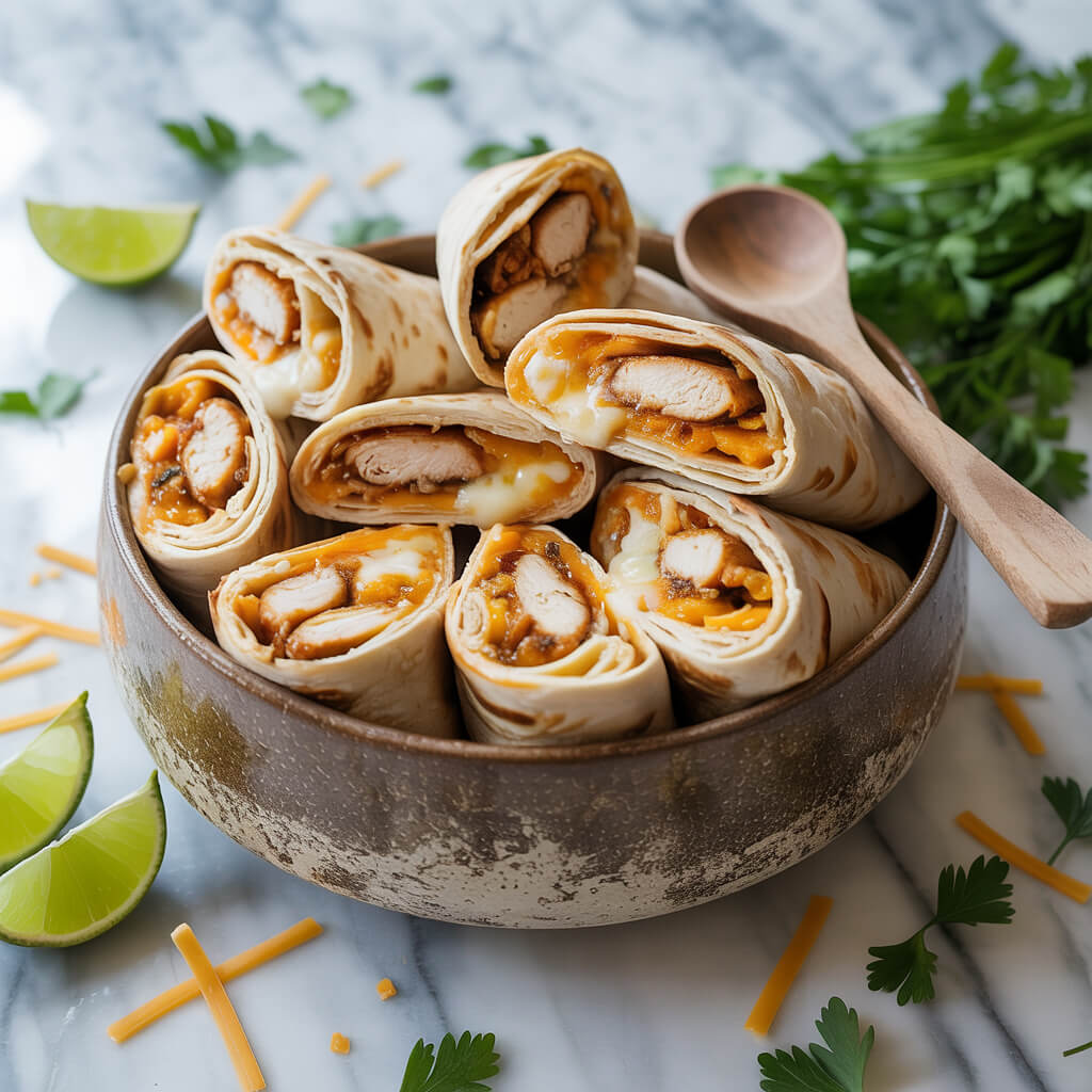If you’re craving something savory, comforting, and fast, these Cheesy Garlic Chicken Wraps deliver on all fronts. Juicy chicken cooked with garlic and herbs meets gooey melted cheese, all wrapped in a warm tortilla for the ultimate handheld meal.The wraps start with tender chicken breasts, seasoned and seared until golden. Then comes the garlic butter magic, a generous handful of shredded cheese, and a lightly toasted tortilla that holds it all together. The result is crispy on the outside, cheesy and flavorful on the inside, and ready in under thirty minutes.Whether you’re prepping lunchboxes, feeding a hungry family, or just looking for an easy weeknight dinner, these wraps are guaranteed to satisfy. Serve them with a side salad, sweet potato fries, or enjoy them as is. They reheat beautifully too, making them great for meal prep.
