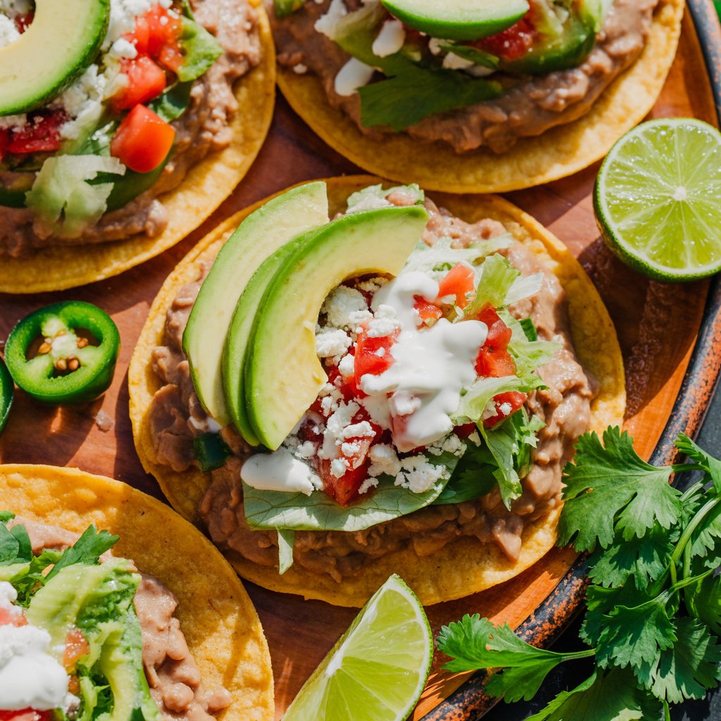 Crispy, golden tostadas piled high with vibrant, bold toppings are a fiesta for the senses. Each bite is a delightful contrast of textures—the crunch of the fried tortilla shell, the creaminess of refried beans, and the freshness of crisp lettuce and juicy tomatoes. The flavors dance on the palate, infused with savory spice, a hint of lime, and that signature Mexican zest that brings people together around the table.