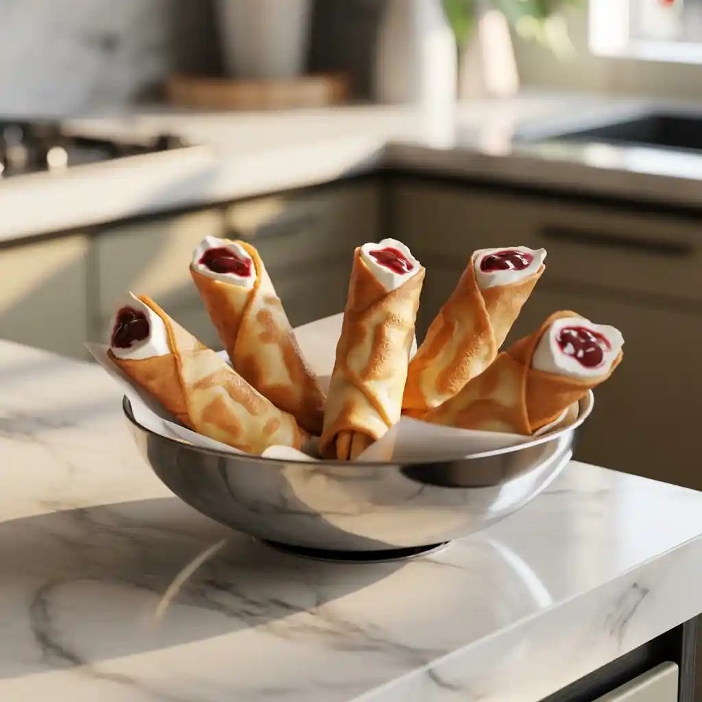 - Step 11: Generously dust the egg rolls with powdered sugar while they are still warm. Serve immediately, and enjoy that first bite of creamy crunch and fruit delight.