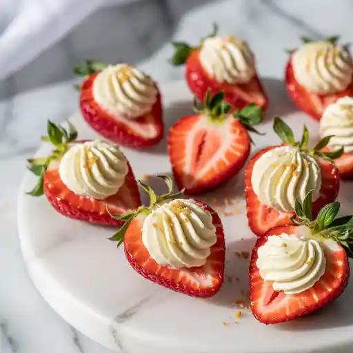 - Step 10: Place strawberries on a platter and chill in the fridge for at least 30 minutes. This helps the filling set and lets the flavors mingle. Serve cold and enjoy how quickly they disappear.