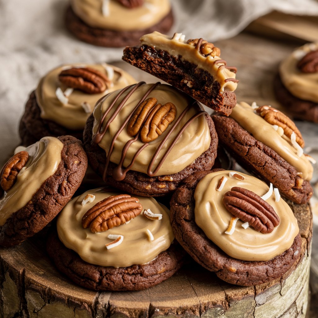 Keywords: german chocolate cookies, coconut pecan cookie, holiday cookies, chocolate cookie recipe