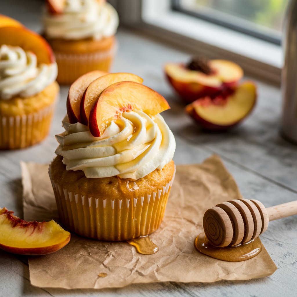 For best results, use peaches that are in season and well-ripened. If using canned, opt for ones packed in juice rather than syrup. Avoid overmixing to keep the texture soft. You can warm the honey slightly for a prettier drizzle. Freeze extra cupcakes before topping with honey.