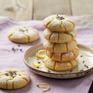 Lemon lavender cookies are best served at room temperature with tea or coffee. Once baked and cooled completely, store them in an airtight container at room temperature for up to 5 days. For longer storage, these cookies freeze beautifully. Lay them in a single layer in a freezer-safe container, then separate layers with parchment paper. Freeze for up to 2 months.