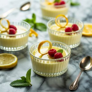 Lemon posset is the kind of dessert that whispers elegance while delivering a bold citrus punch. Its texture is silky and lusciously smooth, like the filling of the finest French tart or a warm cream melting on your tongue. The zesty flavor of fresh lemons cuts through the richness of heavy cream, making each spoonful bright, balanced, and utterly irresistible. Served chilled in petite glasses, it is simple yet stunning — a dessert that turns any night into a special occasion.