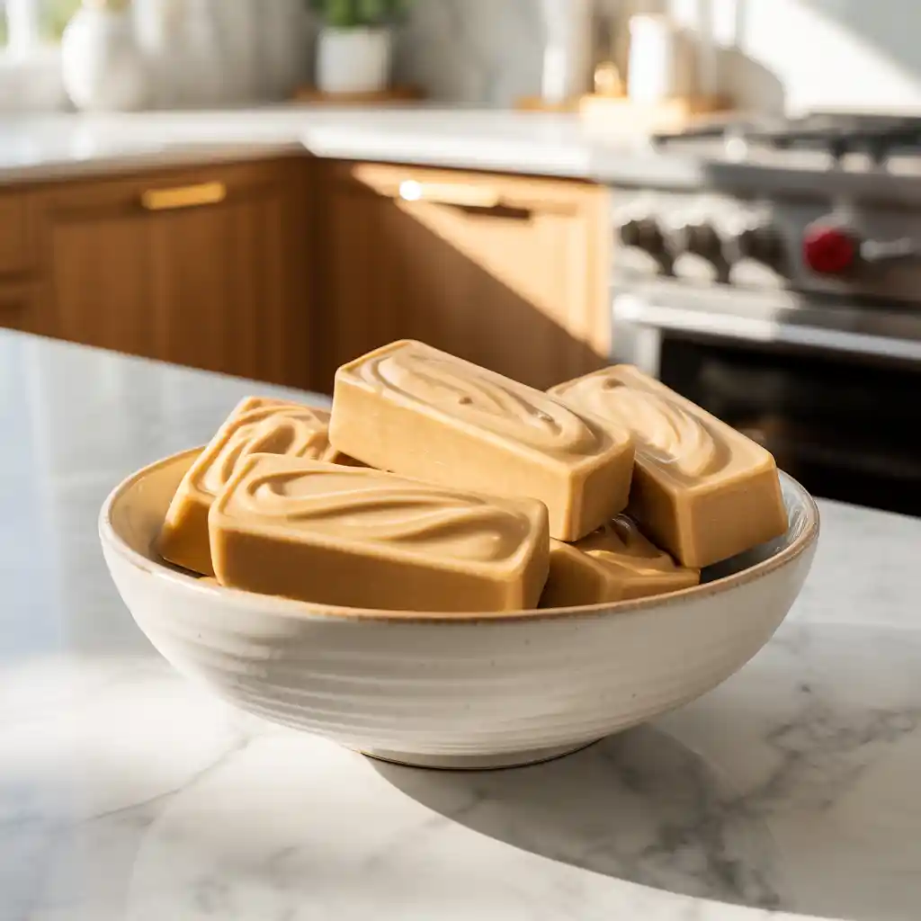 To serve, remove the bars from the freezer and let them sit at room temperature for 5 to 10 minutes before slicing. This softens them just enough for easy cutting while maintaining their firm and creamy texture.