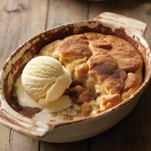 The top bakes up with a delicate crust that crackles as you scoop in, while the inside stays lusciously soft and warm. Serve it straight from the oven, and the scent alone—brown sugar, cinnamon, and real vanilla—will wrap your kitchen in cozy warmth. Topped with a scoop of melty vanilla ice cream or freshly whipped cream, this cobbler transforms into a dessert that feels like a homemade bakery masterpiece with very little effort.