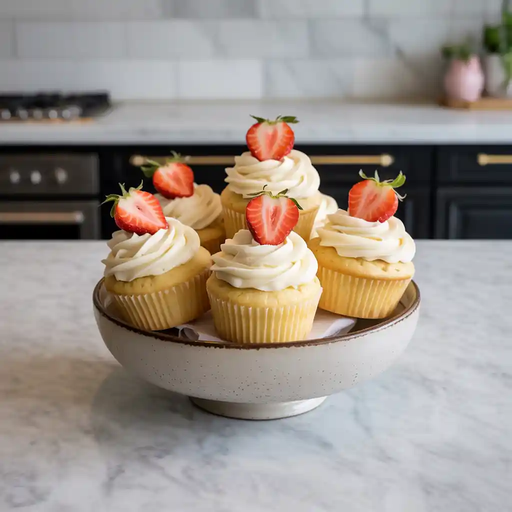 Delicate yet decadent, these cupcakes are perfect for bridal showers, birthday parties, or just as a sweet treat when you want to celebrate life’s little moments. The aroma of warm vanilla and berries fills the kitchen as they bake, wrapping the space in memories of strawberry shortcake picnics and white chocolate truffles. Topped with a swirl of silky strawberry cream cheese frosting, each bite is both elegant and satisfyingly homey.