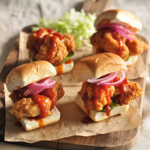 The chicken is double breaded for extra crunch, and the bang bang sauce has just the right kick of heat balanced with a velvety smooth sweetness. Topped with crisp shredded cabbage and tucked into a pillow-soft bun, each slider is a handheld flavor bomb. Whether you serve them fresh off the skillet or from a party tray, they disappear faster than you can say seconds.