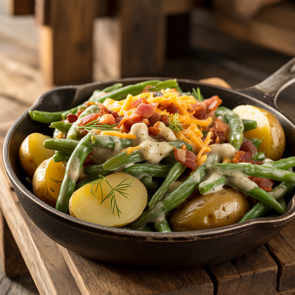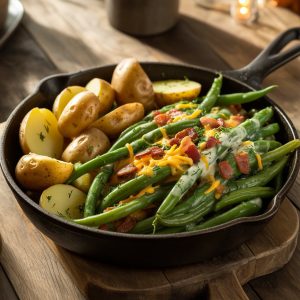 This simple but flavorful dish takes pantry staples and farm-stand vegetables and turns them into something everyone at the table will ask for again. The key here is balance — soft, earthy potatoes, slightly crisp green beans, and that oh-so-comforting ranch seasoning baked or simmered into every forkful. Whether you roast it until the edges brown up or cook low and slow in a skillet, the flavors soak together like a Southern Sunday suppertime.