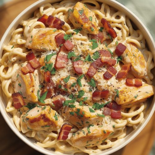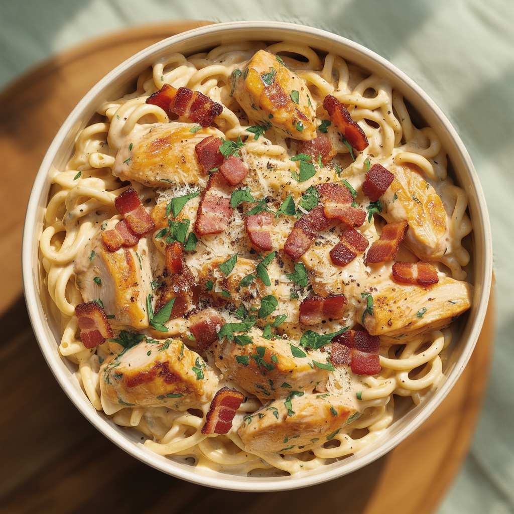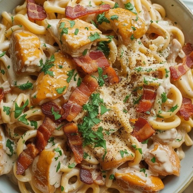 This creamy chicken bacon ranch pasta is everything you crave in one skillet. It takes the bold, savory flavors of ranch seasoning and layers them with crisp bacon, juicy chicken, and pasta all coated in a velvety cream cheese and cheddar sauce.What makes this recipe a go to is its simplicity and richness. You can use any pasta you have on hand, and it’s a fantastic way to use leftover cooked chicken or freshly pan seared breast. The addition of garlic and shredded cheddar brings that warm, homemade taste that feels like a hug in a bowl.Perfect for busy families, weeknight dinners, or meal prepping for the week, this dish is always a hit. It’s indulgent, cheesy, and fully satisfying everything a comfort food pasta should be.