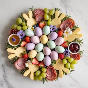 This Easter charcuterie board is as easy to make as it is stunning. With no cooking required, it’s perfect for hosts looking to assemble something delightful in under an hour. It works beautifully alongside traditional Easter dishes, or even as a lighter alternative to a heavy meal. The board is endlessly customizable—swap in your favorite cheeses, use seasonal fruits, or go entirely vegetarian.