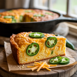 Baking in a cast iron skillet, this cornbread comes out with the kind of crusty bottom that Southerners dream about. The aroma fills the kitchen with the buttery scent of freshly baked bread mixed with the toasty scent of cornmeal. Whether served beside a bowl of chili, paired with fried chicken, or enjoyed as a stand-alone snack with a pat of butter, this jalapeno cheddar cornbread turns an ordinary meal into something unforgettable.