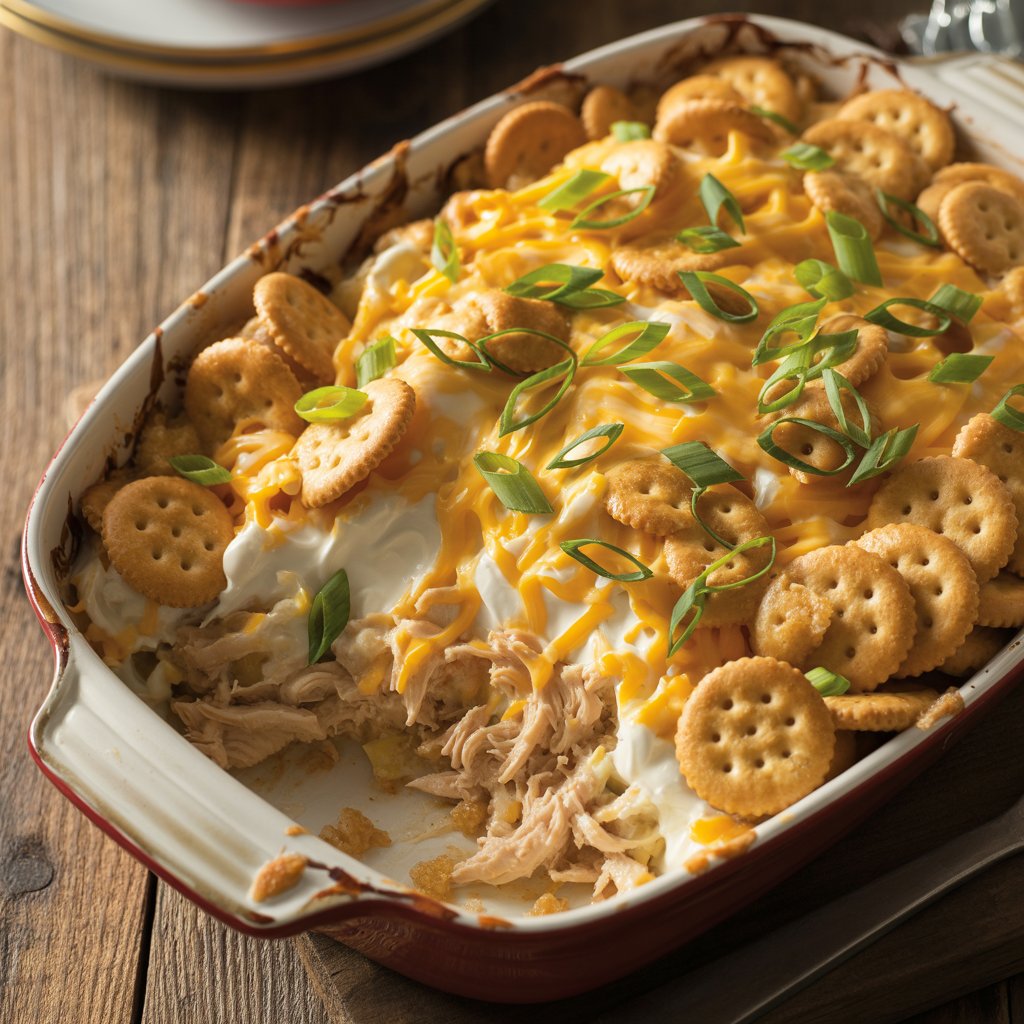 - Prepare the topping: In a separate bowl, stir the crushed Ritz crackers with the melted butter. This topping gives the casserole its signature golden crunch.