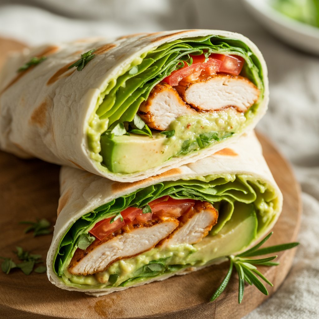 - Slice the wraps in half if you like, or leave them whole. Serve right away for the freshest bite that still has that warm chicken and cool avocado magic.