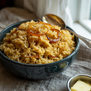Golden Onion Butter Rice is one of those cozy dishes that quietly steals the show. What starts as a simple mixture of rice, onions, and butter transforms into a deeply flavorful, aromatic side you’ll want to make again and again. The onions cook down into golden ribbons that melt into each grain, while butter gives everything an irresistible silkiness.