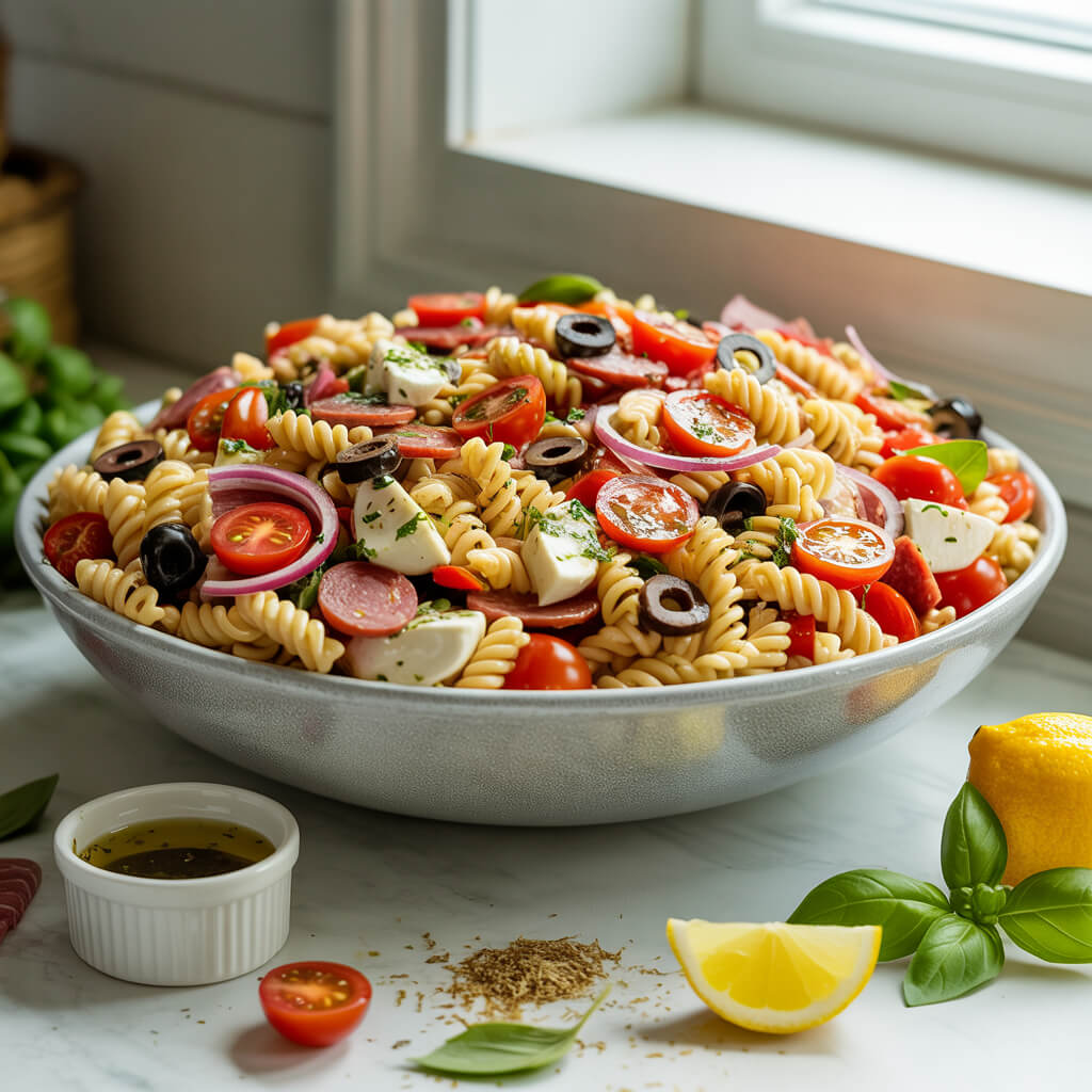 Italian pasta salad is a classic cold dish that never goes out of style. It is simple, quick to make, and endlessly adaptable. The base is short pasta cooked al dente, combined with fresh vegetables, olives, cheese, and sometimes sliced meats. Everything is tossed in a tangy vinaigrette made with olive oil, vinegar, and Italian spices that soak into the pasta for extra flavor.This dish is perfect for meal prep or potlucks. You can make it ahead of time and the flavors only get better as it sits. It is great as a main for a light lunch or a refreshing side for grilled meats. With a balance of texture and taste, this pasta salad brings freshness, saltiness, and a bit of crunch in every bite.You can keep it vegetarian or add salami, tuna, or grilled chicken to turn it into a full meal. The beauty of this salad is how easy it is to customize based on what you have in your kitchen.