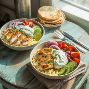 These bowls are like a mosaic of Mediterranean flavors artfully arranged in a single dish. Warm grains soak up every drop of that tangy marinade, while the bright flavors of lemon and herbs make the chicken sing. A sprinkle of feta cheese adds briny creaminess, and the tzatziki feels like a cool breeze on a hot Greek afternoon. Whether eaten warm or chilled, this dish will transport your taste buds to the islands of the Aegean.