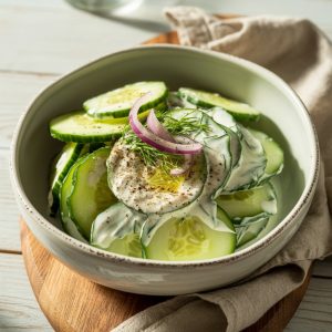 We hope you enjoyed this article about creamy cucumber salad! If you did, feel free to leave a comment and let us know your thoughts. Don’t forget to pin this post or any image from the article on Pinterest — it really helps more people discover our content. And if you like the pin, please give it a thumbs up — it means a lot to us and helps us keep creating even better recipes and ideas!