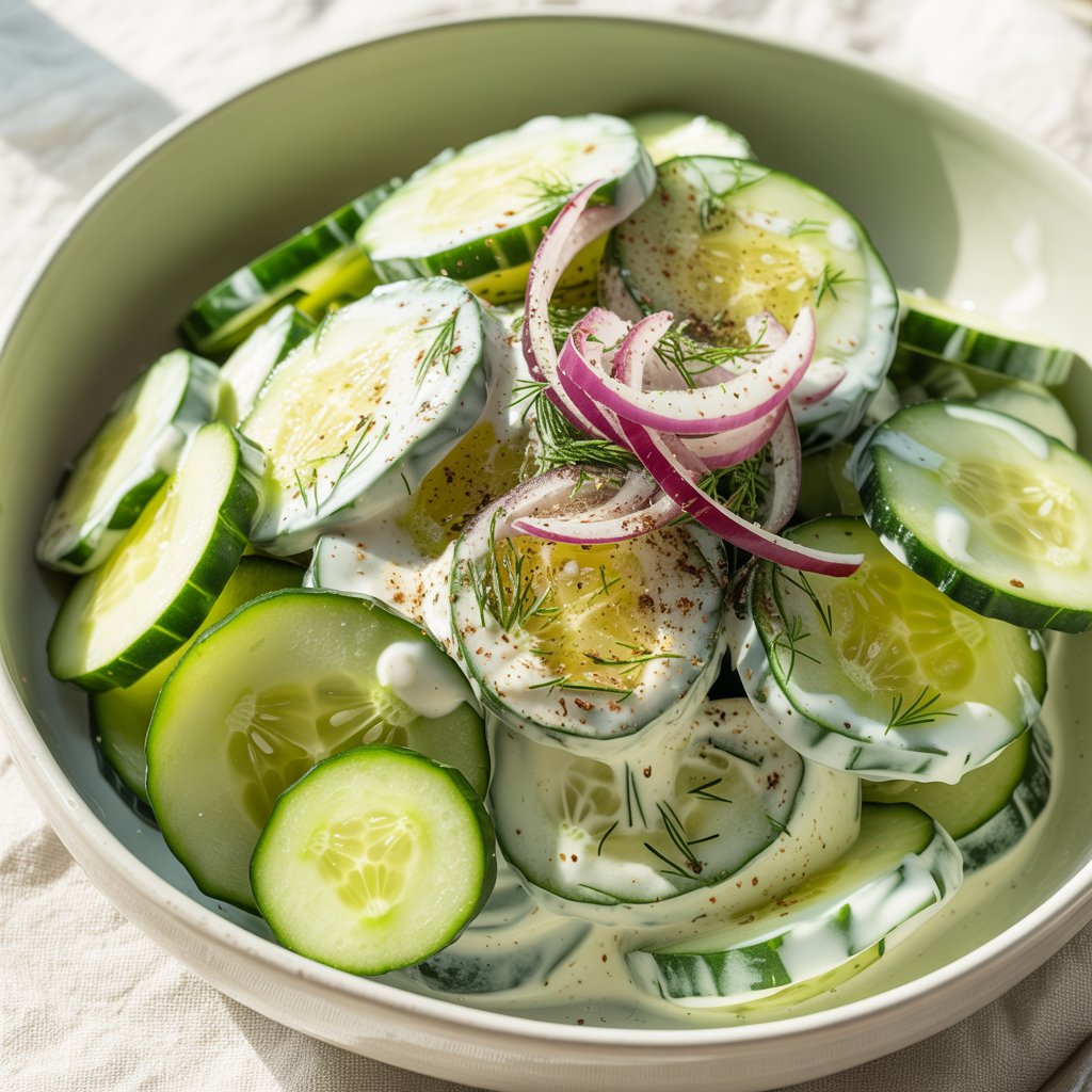This salad is reminiscent of long summer nights on the porch, where every dish brings comfort and simplicity. The soft dill aroma mingles with the chill of sour cream, like a garden picnic in a bowl. Paired with grilled meats or served beside roasted vegetables, this salad always delivers a clean, cooling contrast that completes the plate without stealing the spotlight.