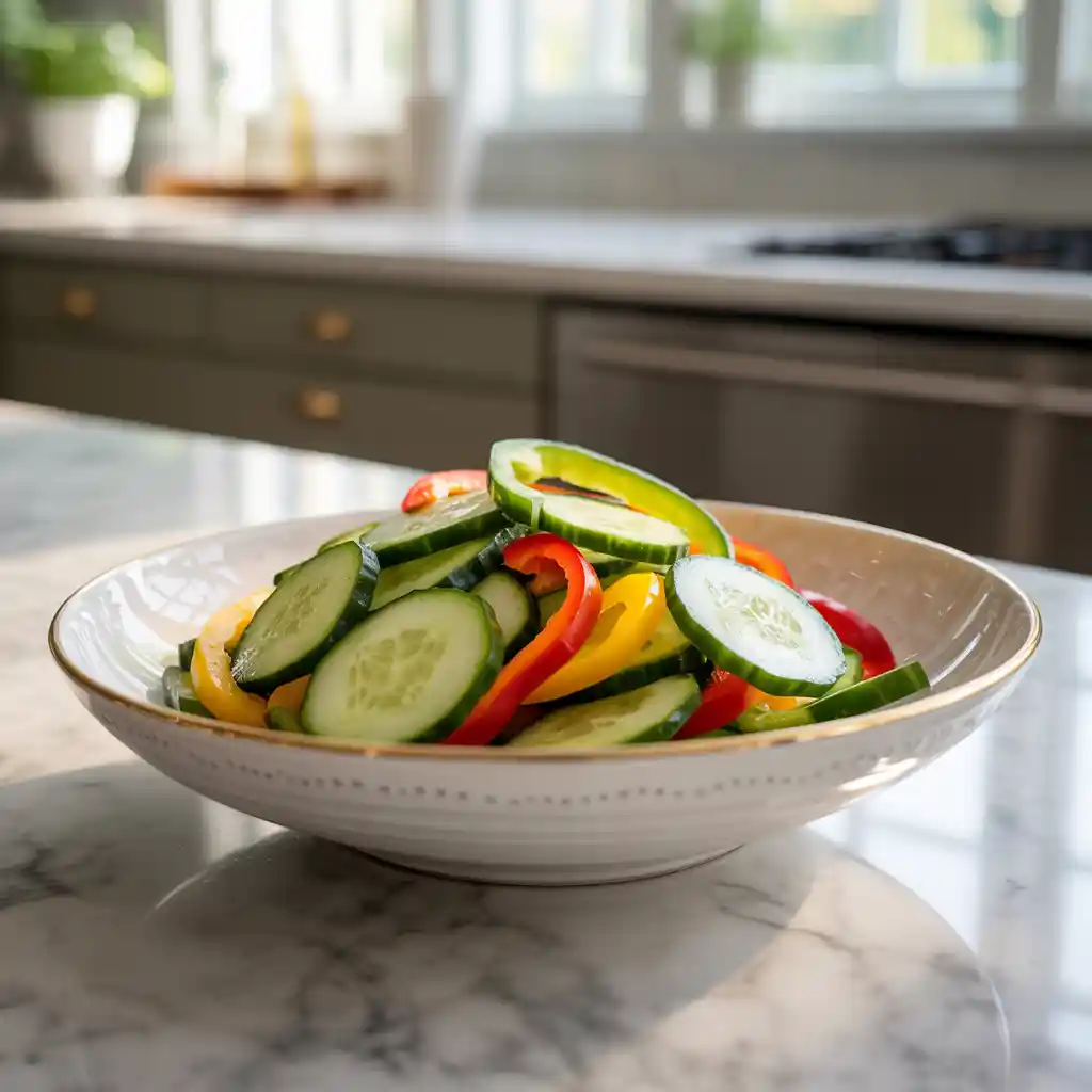 Cucumber pepper salad is as easy to make as it is to love. With minimal prep and no cooking required, it comes together in under 15 minutes. You can easily customize it with your favorite herbs, vinegars, or even toss in some feta or chickpeas for added protein. It is gluten-free, dairy-free, and naturally low in calories, making it a healthy side dish option for nearly any diet.