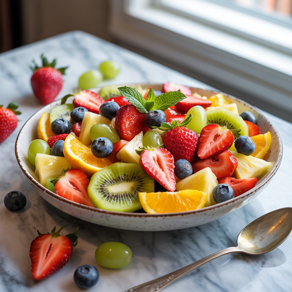 There is something undeniably joyful about a fresh fruit salad. It bursts with color and energy, like summer captured in a bowl. Each bite is a celebration of nature’s candy — sweet strawberries, tangy pineapple, crisp apples, juicy melon, and vibrant blueberries. The flavors compete and harmonize, a delicious medley of textures from the tender to the crunchy, all coming together in a refreshingly light and wholesome dish.
