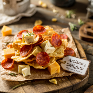 Cheese and pepperoni crisps are the ultimate savory snack adventure. Imagine biting into a lacy round of golden cheese, crisped to perfection, with bits of smoky pepperoni tucked inside like little bursts of flavor. The edges are perfectly crunchy while the centers maintain a mellow chew, delivering a satisfying contrast that will keep you reaching for more. These crisps smell like your favorite pizzeria on a busy Friday night — rich with melty cheese, sizzling pepperoni, and indulgent comfort.