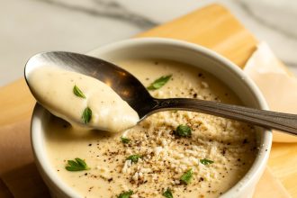 You can substitute the butter with olive oil and use nutritional yeast instead of Parmesan for a dairy-free version.