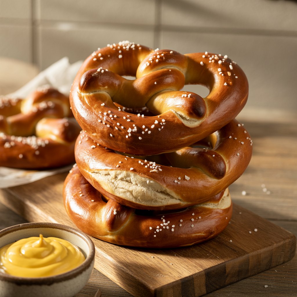 Warm, golden brown, and irresistibly chewy, soft homemade pretzels bring the feeling of a classic American ballpark or German bakery right to your kitchen. Bite into the crisp exterior and experience the soft, fluffy center that stretches and pulls like warm doughy magic. Fresh from the oven and brushed with melted butter, these pretzels deliver that nostalgic combo of salty crunch and tender bite that makes them unforgettable.