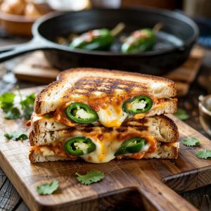 Each bite starts with a crispy crunch from the toasted exterior and melts into a luscious mix of sharp cheddar, creamy cream cheese, and roasted jalapeños. The flavor is rich and spicy, yet perfectly balanced by the creamy elements. It is a sandwich that tastes like a celebration, evoking memories of tailgate parties, cozy movie nights, or indulgent weekend lunches—a dish that feels like a treat but is easy enough for any day of the week.